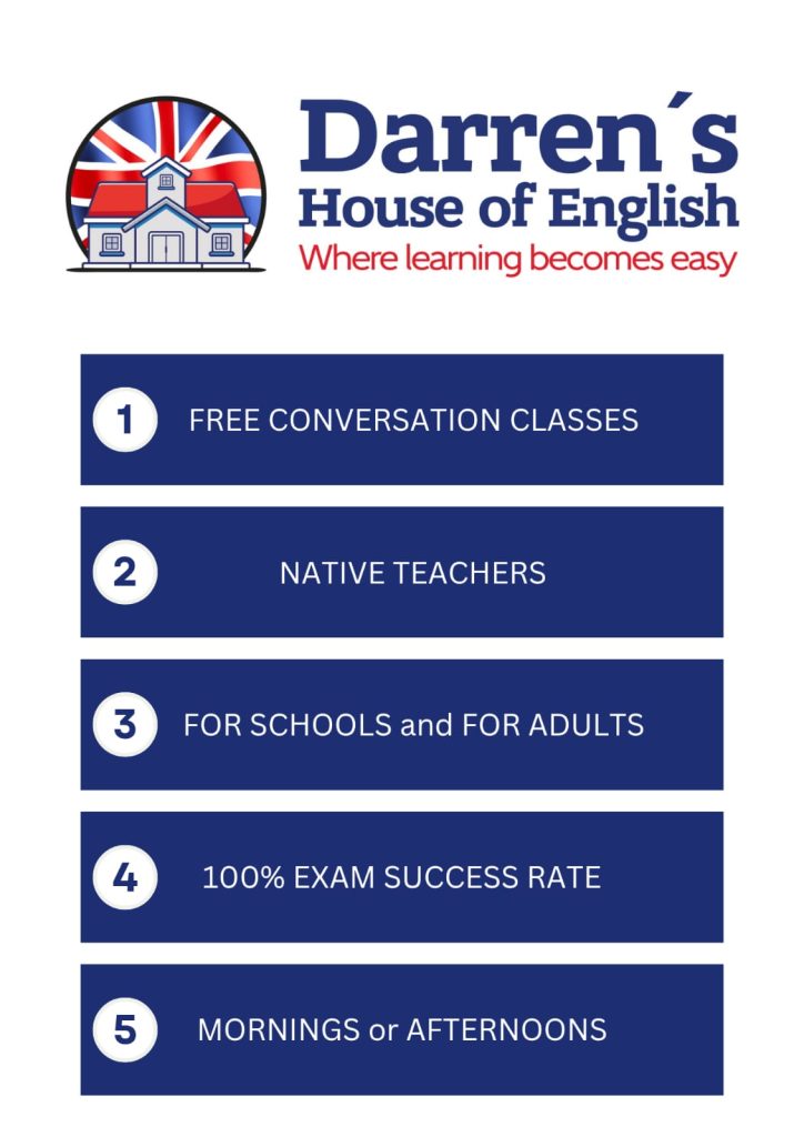 Únete a nosotros y experimenta el éxito aprendiendo inglés en Darren's House of English.